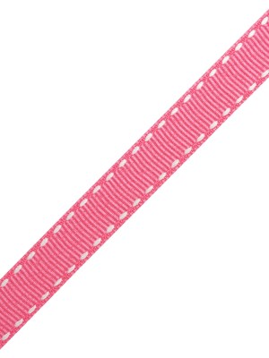 Grosgrain Ribbon with White Stitched Borders – Hot Pink – 0.625″