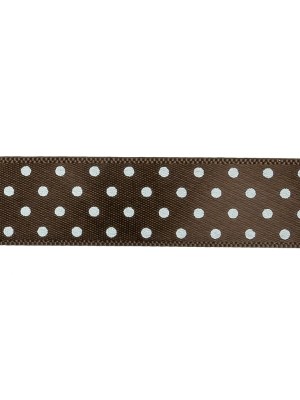 Brown and White Polka Dot Satin Ribbon – 0.625″
