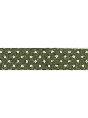 Olive and White Polka Dots Satin Ribbon – 0.625″