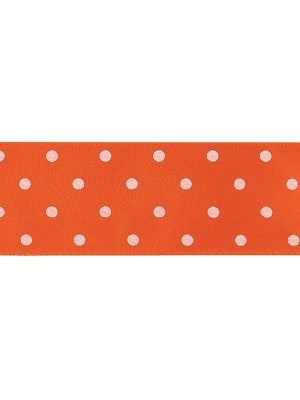 Carrot and Bright White Polka Dots Satin Ribbon – 1″