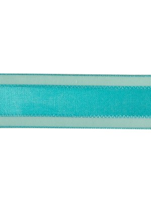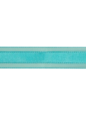 Turquoise Woven Ribbon with Sheer Organza Borders – 1″