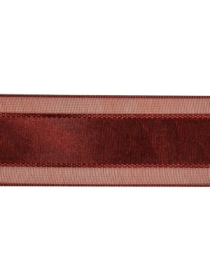 Wine Woven Ribbon with Sheer Organza Borders – 1″