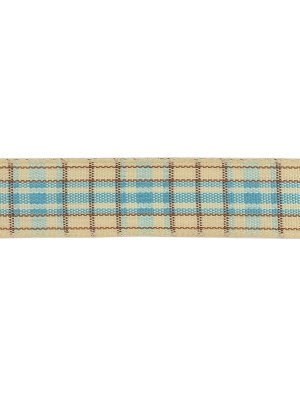Sky Blue, Brown and Vanilla Ice Plaid Woven Ribbon – 0.625″