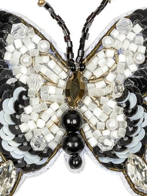 Black and White Butterfly Rhinestone and Glass Beaded Applique – 2.25″ X 2″