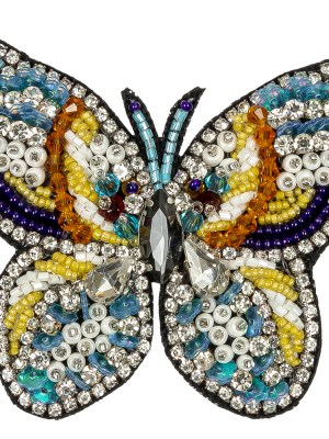 Blue Radiance, Bright Marigold and Vibrant Yellow Butterfly Rhinestone and Glass Beaded Applique – 2.375″ X 2.75″