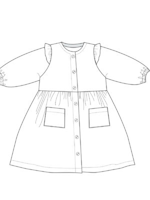 MIMI Girls’ Dress Sewing Pattern PDF – Woven Dress with Sleeveless & Long Sleeve Options – Button Front – Sizes 6m–7y – Easy to Sew