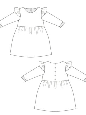 MIMI Girls’ Dress Sewing Pattern PDF – Woven Dress with Sleeveless & Long Sleeve Options – Button Front – Sizes 6m–7y – Easy to Sew