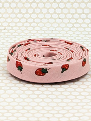 Double Fold 1/2” Bias Tape Strawberries Pink